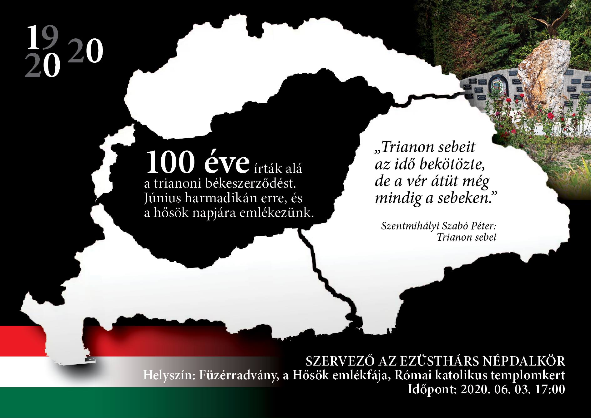 Trianon 100 éves évfordulója és a hősök napja alkalmából, június 3.-án (szerdán) este, 17 órakor találkozzunk Füzérradványban a Római Katolikus tempolom kertjében!